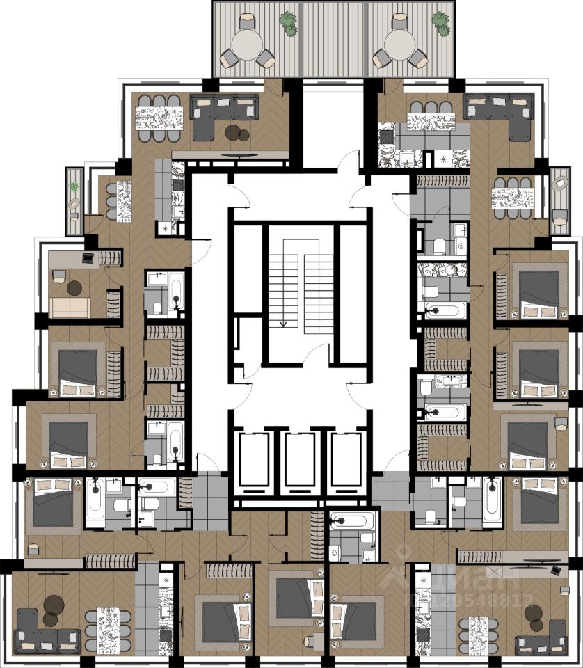 Панорамный бассейн-инфинити и джакузи под открытым небом. Сервис уровня 5 звезд. Персональные официанты из ресторана комплекса обеспечат подачу блюд и напитков прямо к вашему шезлонгу или в лаунж-зону.