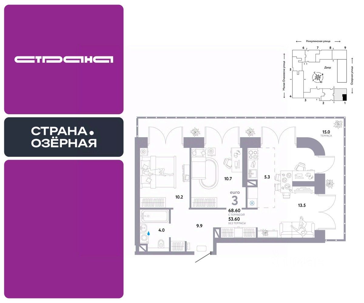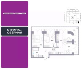 3комнатная квартира площадью 68,6кв. м. на 8этаже в доме "Байкал" жилого комплекса "Страна.Озёрная" . Срок сдачи дома - 2 квартал 2026 года.