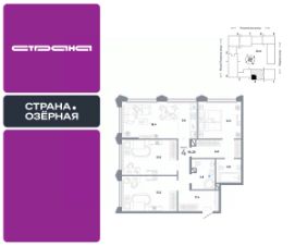 4комнатная квартира площадью 94,2кв. м. на 27этаже в доме "Байкал" жилого комплекса "Страна.Озёрная" . Срок сдачи дома - 2 квартал 2026 года.