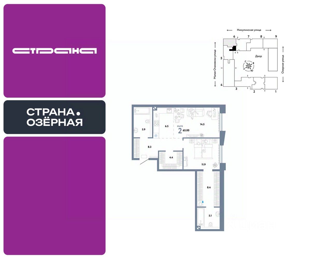 2комнатная квартира площадью 65кв. м. на 7этаже в доме "Байкал" жилого комплекса "Страна.Озёрная" . Срок сдачи дома - 2 квартал 2026 года.