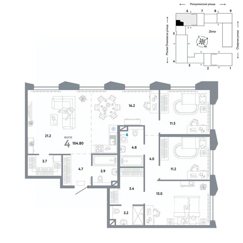 4комнатная квартира площадью 104,8кв. м. на 30этаже в доме "Байкал" жилого комплекса "Страна.Озёрная" . Срок сдачи дома - 2 квартал 2026 года.