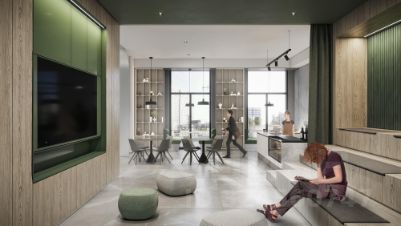 Парадные и лобби. На первом этаже дома — зона для отдыха и коворкинга, лапомойка для собак и колясочные
