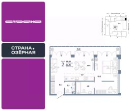 2комнатная квартира площадью 59,53 кв. м на 8 этаже в доме "Байкал" жилого комплекса "Страна.Озёрная" . Срок сдачи дома - 3 квартал 2025 года.