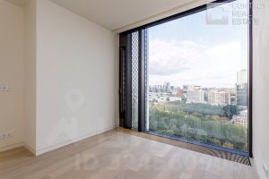 Квартира очень светлая и просторная, благодаря высоким потолкам и множеству панорамных окон. Из окон открывается потрясающий панорамный вид на центр Москвы, Москва-реку, зеленый парк, Москва-Сити, Дом Правительства РФ.