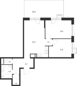 Общая площадь: 68,8 кв.м., жилая: 39,8 кв.м., площадь кухни-гостиной: 22,3 кв.м., высота потолков: 2,72 м., окна выходят во двор и на улицу.