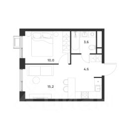 Общая площадь: 33,4 кв.м., жилая: 20,8 кв.м., площадь кухни-гостиной: 15,2 кв.м., высота потолков: 3 м., окна выходят на улицу.