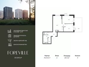 Продается уютная 2-комн. квартира площадью 69,4 кв.м на 2 этаже 17 этажного жилого комплекса бизнес-класса Foreville от 3S Group.