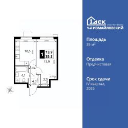 Продаётся 1-к квартира номер 705 общей площадью 35.3 кв.м. на 14-м этаже 15 этажного здания. Отделка Whitebox. Цена с учётом скидки.