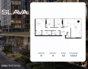 В продаже 3-комнатная квартира площадью 112.20 м² на 12-м этаже корпуса D.