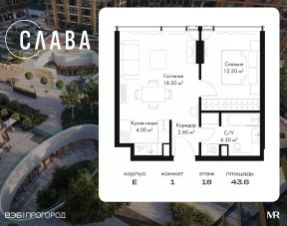 Квартиры премиум-класса в жилом комплексе Слава у м. "Белорусская" от застройщика. В продаже 1-комнатная квартира площадью 43.60 м² на 18-м этаже корпуса E. Новый современный жилой комплекс премиум-класса Слава расположен в той части центра, где традиция соединяется с прогрессивными городскими тенденциями. Здесь историческая Москва встречается с передовым миром. Популярные театры и старинные церкви соседствуют с современным деловым кварталом и гастрономическим кластером Депо. Слава находится всего в 5 мин. пешком от м. "Белорусская", по-новому открывая Ленинградский проспект. Проект был разработан легендарным архитектором Хельмутом Яном, основателем чикагского архитектурного бюро Jahn. Его работы отмечены множеством наград и реализованы в мегаполисах по всему миру. По замыслу архитекторов, жилой комплекс образуют четыре высотные башни, соединенные одноэтажным стилобатом "Хронограф". Здесь, на первом уровне, открытые и закрытые общественные пространства: небольшие сады, места для встреч и отдыха, кафе, рестораны, магазины, спортивный центр и даже выставочное пространство. Важнейшей особенностью пространства является его всесезонность: благодаря правильной организации, ландшафтному дизайну, инженерной инфраструктуре здесь будет уютно и в жару, и в xолод, и в ненастье. На втором уровне стилобата расположится приватный парк для жильцов. Особенности комплекса: - Идеальное расположение в престижной части Москвы (10 мин. от Кремля) - Панорамное остекление - Подземный паркинг с дизайнерской отделкой - Современные инженерные системы - Продуманная внутренняя инфраструктура - Приватный сад 7700 кв.м. Расположение комплекса: - 5 минут до станции метро "Белорусская" - 3 минуты до ТТК - 8 минут до "Садового кольца" Компания MR предлагает своим клиентам специальные условия приобретения квартир в рамках программ ипотечного кредитования от банков-партнеров.