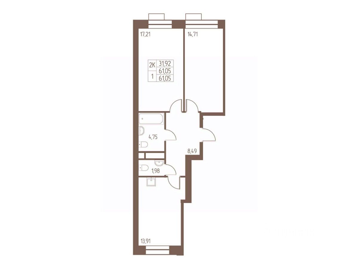 Общая площадь61,1 м²