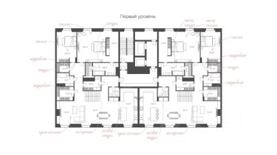 Возможно спланировать просторную кухню-гостиную, мастер-спальню с собственной ванной комнатой и гардеробной, до 10 спален со своими санузлами, гардеробные, постирочную, холл. Предусмотрена возможность установки дровяного камина. Благодаря панорамному остеклению пространство наполнено естественным светом и воздухом.