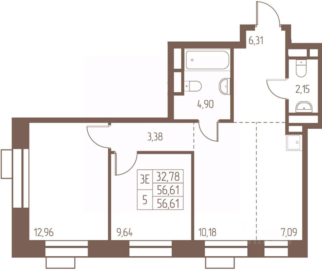 56,6 м²