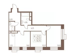 56,9 м²