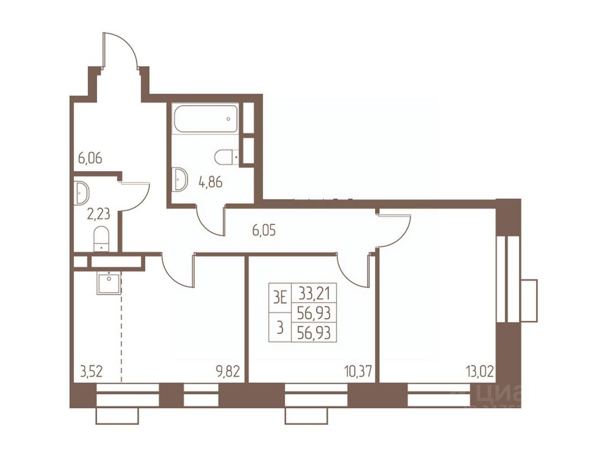 56,9 м²
