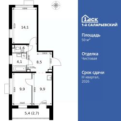 Продаётся 2-к квартира номер 34 общей площадью 50.8 кв.м. на 2-м этаже 24 этажного здания. Чистовая отделка. Цена с учётом скидки.