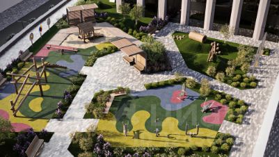 Во дворе царит атмосфера легкого беззаботного настроения. По сторонам расположились любимые местными жителями магазинчики, где можно купить товары первой необходимости, кафе, где приятно посидеть с друзьями, и кофе-пойнты. На бульваре можно посмотреть уличную выставку, поиграть с соседями в шахматы и покачаться на световых качелях.