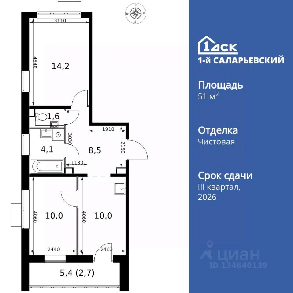 Продаётся 2-к квартира номер 188 общей площадью 51.1 кв.м. на 24-м этаже 24 этажного здания. Чистовая отделка. Цена с учётом скидки.