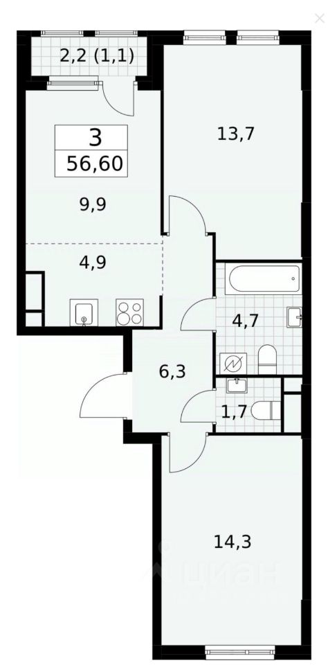 Арт. 127157155 Просторная 3-евро квартира в ЖК "Южные сады" на 26 этаже монолитного дома. Общая площадь: 57 кв.м., жилая: 28кв.м., площадь просторной кухни-столовой: 15 кв.м. В квартире имеется лоджия. Высота потолков 3м. Квартира предлагается без отделки, полностью готова к ремонту. Будут установлены стеклопакеты с повышенной тепло- и шумоизоляцией, в квартиру заведены все коммуникации. Вы сможете в полном объеме реализовать Ваши идеи обустройства Вашего комфортного дома. Квартира находится в корпусе 2.3. Дом монолитно-блочный, одноподъездный, высотой 21 этажей. В подъезде 1 пассажирский и 2 грузовых лифта.