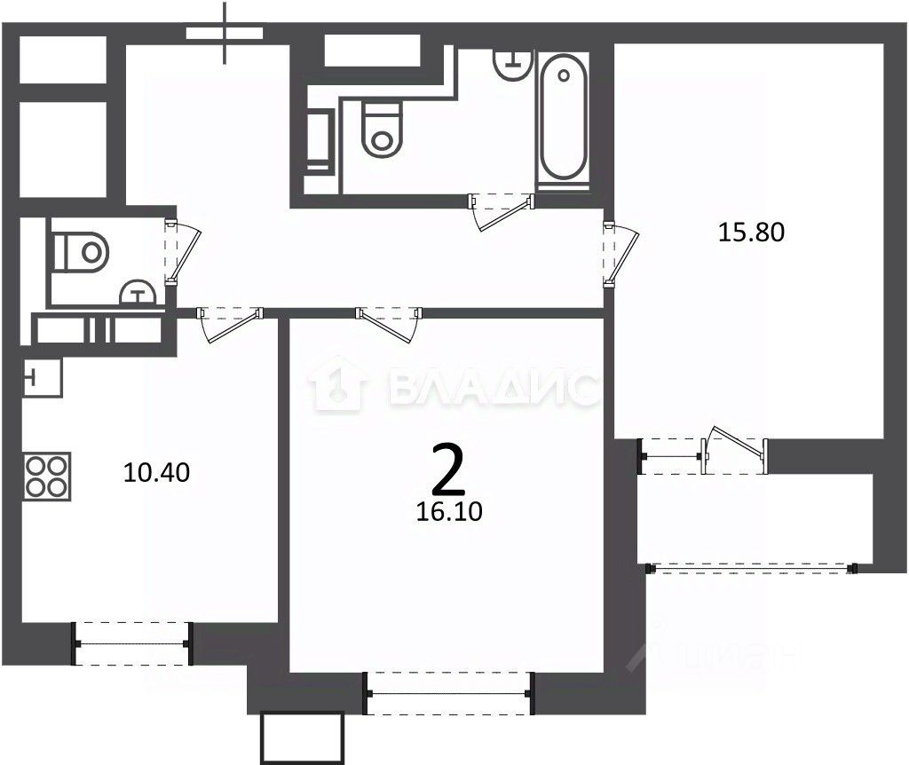 В продаже двухкомнатная квартира общей площадью 58,1 кв. м, расположенная на 8-м этаже 15-этажного монолитно-кирпичного дома, построенного в 2025 году. Жилая площадь составляет 31,9 кв. м, а кухня — 10,4 кв. м. Комнаты изолированы, окна выходят на улицу.