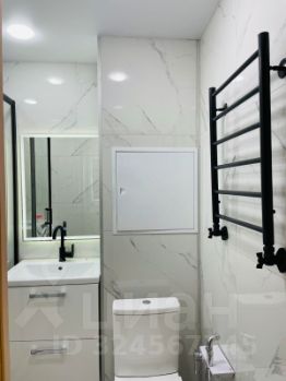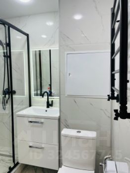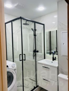 В санузле современный ремонт из качественных материалов, с хорошей сантехникой.