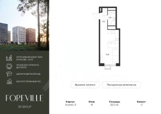 Продается уютная студия площадью 22,2 кв.м на 15 этаже 17 этажного жилого комплекса бизнес-класса Foreville от 3S Group.