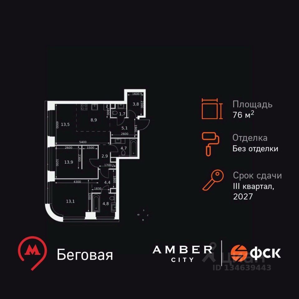 - Станция метро "Беговая" - 5 минут пешком