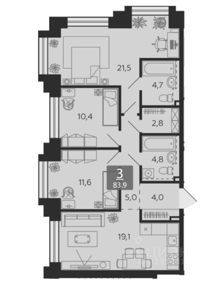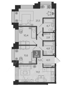 Продается просторная четырехкомнатная квартира в ЖК "Шагал" общей площадью 83,9 кв. м на 13 этаже 21-этажного дома. Высокие потолки в 3,1 метра создают ощущение свободы и простора. Жилая площадь составляет 56 кв. м, а кухня впечатляет своими размерами — целых 19,2 кв. м, что идеально для семейных обедов и встреч с друзьями.