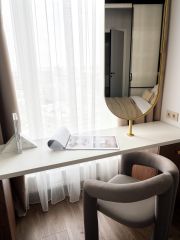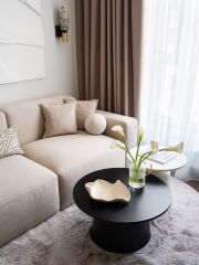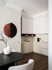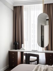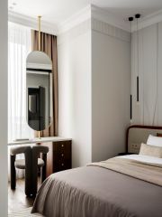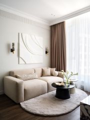В квартире выполнен ремонт отличного качества по авторскому дизайн проекту. Планировочное решение предусматривает две изолированные спальни, одна из них мастер-спальня со своей гардеробной и санузлом. А также, в квартире просторная кухня-гостинная и гостевой санузел.