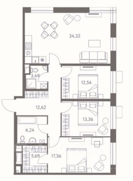 Просторная квартира c отделкой и мебелью площадью 105,4 м2 в ЖК LIFE -Варшавская. Квартира с 3-мя изолированными спальнями, включая мастер-спальню с гардеробной (17м2+6м2) и кухню-гостиную, площадью 34м2. Два совмещенных санузла.