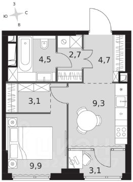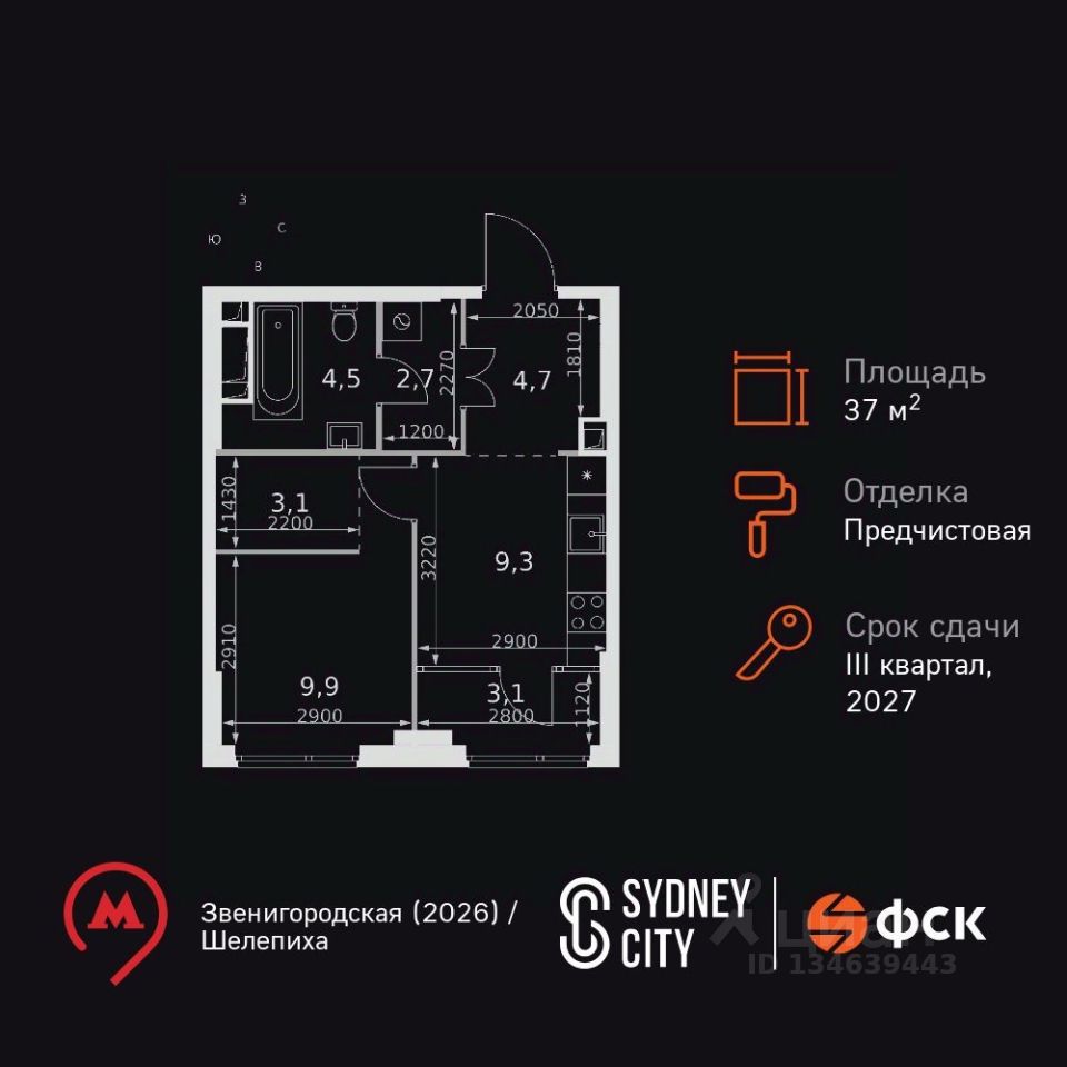 Продаётся 1-к квартира номер 540 общей площадью 37.3 кв.м. на 9-м этаже 42 этажного здания. Отделка Whitebox. Цена с учётом скидки.