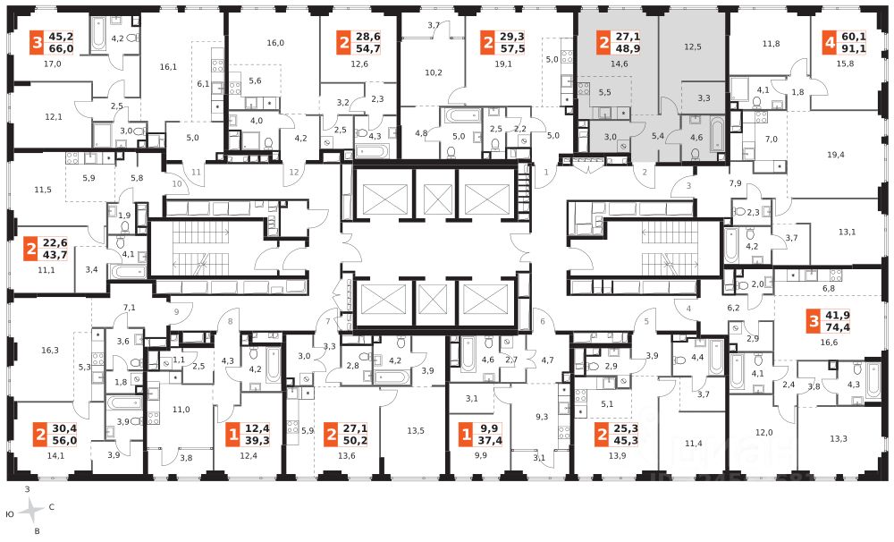 Продаётся 2-к квартира номер 644 общей площадью 48.9 кв.м. на 18-м этаже 42 этажного здания. Без отделки. Цена с учётом скидки.