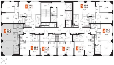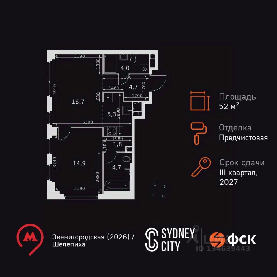 Продаётся 2-к квартира номер 39 общей площадью 52.1 кв.м. на 6-м этаже 28 этажного здания. Отделка Whitebox. Цена с учётом скидки.