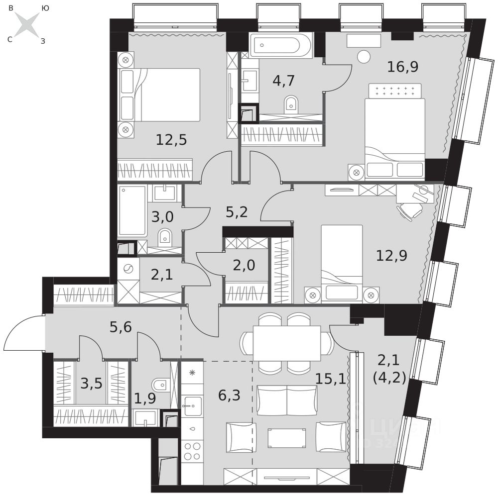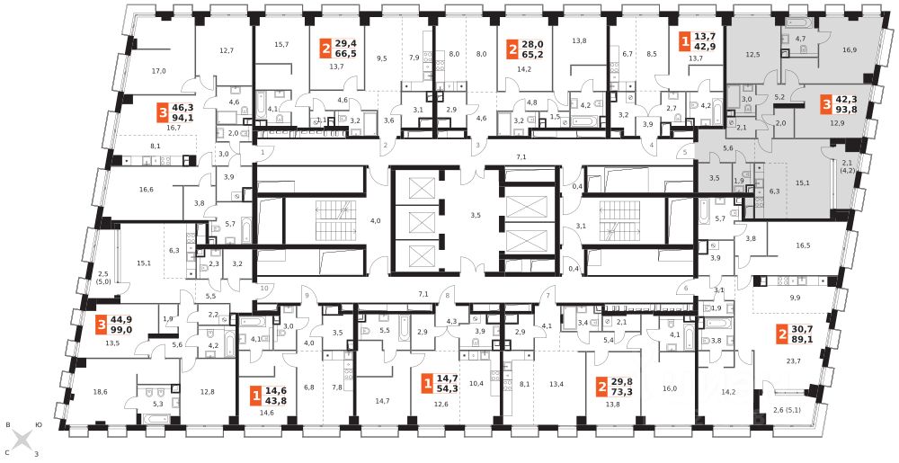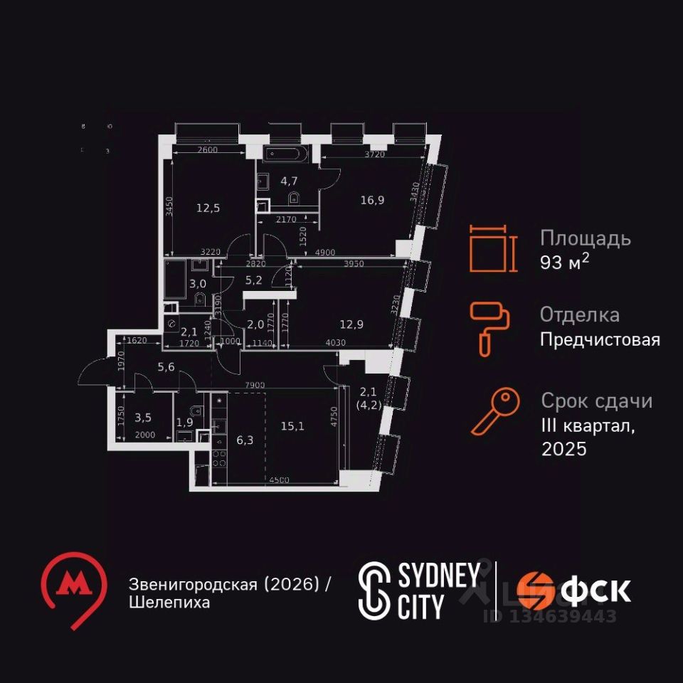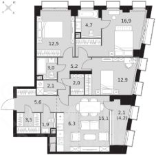 Продаётся 4-к квартира номер 319 общей площадью 93.8 кв.м. на 4-м этаже 43 этажного здания. Отделка Whitebox. Цена с учётом скидки.