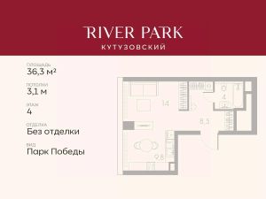 Продается студия площадью 36.3 кв.м. на 4-м этаже в жилом комплексе премиум-класса River Park Кутузовский в Башне Lazur Tower
