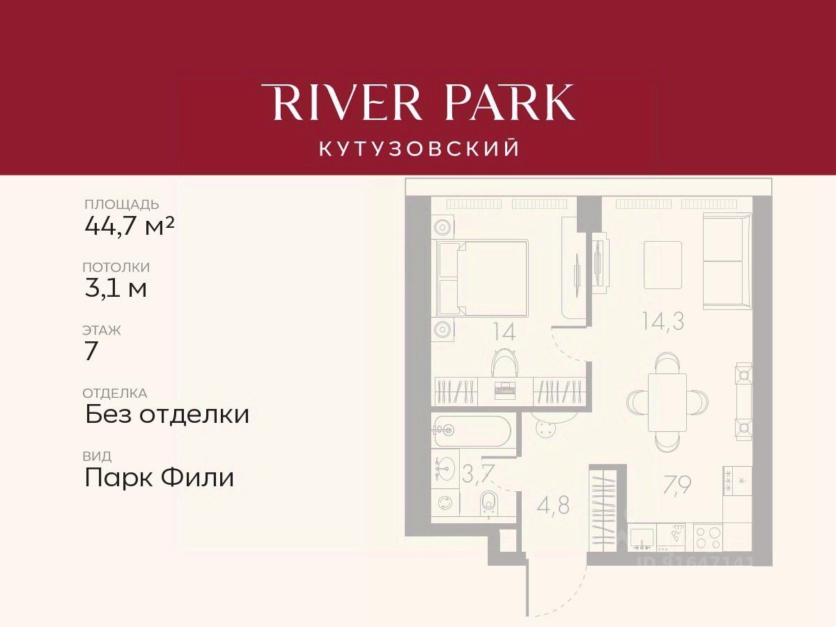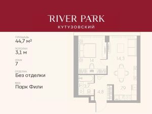 Продается 1-к квартира площадью 44.7 кв.м. на 7-м этаже в жилом комплексе премиум-класса River Park Кутузовский в Башне Lazur Tower
