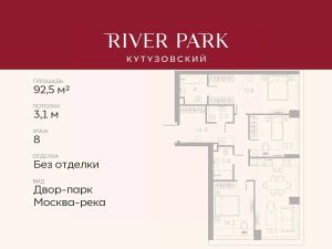 Продается 3-к квартира площадью 92.5 кв.м. на 8-м этаже в жилом комплексе премиум-класса River Park Кутузовский в Башне Lazur Tower