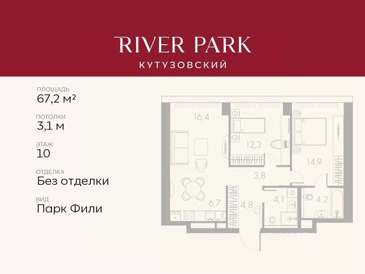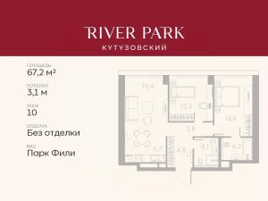 Продается 2-к квартира площадью 67.2 кв.м. на 10-м этаже в жилом комплексе премиум-класса River Park Кутузовский в Башне Lazur Tower