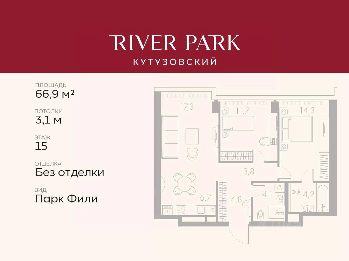 Продается 2-к квартира площадью 66.9 кв.м. на 15-м этаже в жилом комплексе премиум-класса River Park Кутузовский в Башне Lazur Tower