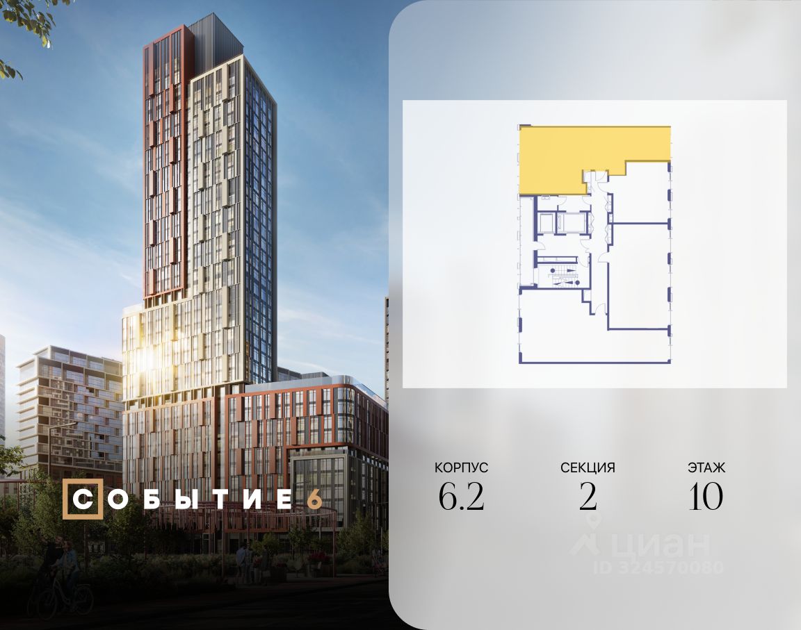 Продаётся 2-комнатная квартира от застройщика: общая площадь 74.50 м², жилая 30.40 м², кухня 27.20 м², 10-й этаж, жилой квартал "Событие-6", корпус 2 (секция 2) Срок сдачи: 1 квартал 2029 года.