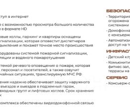 Здание из монолитно-кирпичных материалов, что гарантирует долговечность и надежность. Для вашего удобства предусмотрены подземная парковка, пассажирский и грузовой лифты, а также мусоропровод.