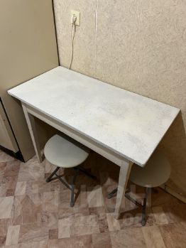 В квартире остается все наполнение. Кухонный гарнитур, холодильник, обеденный стол, стиральная машина, односпальная кровать, шкаф-гардероб, стеллажи.