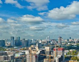 Стремящиеся ввысь небоскребы, благоустроенный парк с зонами отдыха для взрослых и детей, а также многочисленные объекты инфраструктуры возводятся в западной части центра Москвы.