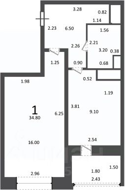 1-комн. кв., 34,8 кв.м