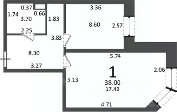 1-комн. кв., 38 кв.м
