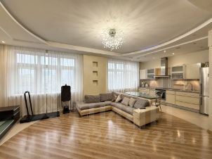 Вашему вниманию предлагается уникальная просторная квартира общей площадью 115м2 : прихожая с полноценным гостевым санузлом , кухня-столовая , большая гостиная , 2 большие спальные комнаты правильной формы , большой санузел , наполнена светом , высокие потолки больше 3 метров , эркеры с панорамными окнами