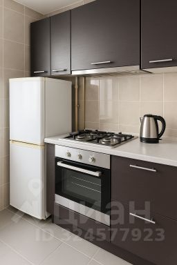 • Кухня со всем необходимым: варочная панель, холодильник, рабочая поверхность.