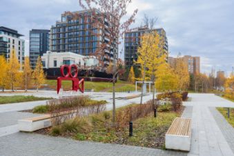 - территория ЖК 8 гектар, на который оборудованы детские и спортивные площадки, пространства для отдыха, спорт-клуб World Class Black, спортивно-развлекательный центр Berimbola, английский детский сад Discovery platinum, Кофемания и др.