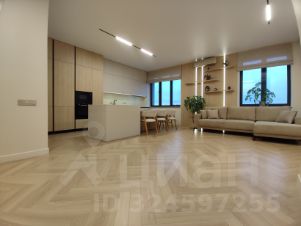 Квартира с функциональной планировкой, имеется гардеробная, постирочная, два совмещенных С/У оборудованные ванными, 3 изолированные комнаты площадью 20,0-16,3-12,4 кв.м. Высота потолков 3 м., современная кухня-гостиная 43,3 кв.м. Большая спальня 20 кв.м. имеет зонирование на спальную и рабочую зону, отделена стеклянной перегородкой и шторой.