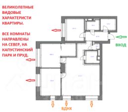 Прекрасные видовые характеристики с каждого окна, все комнаты направлены на Север, на Капустинский парк и пруд, окна из гостинной на ВДНХ. Красивая входная группа, видео-наблюдение, охрана, круглосуточный консьерж-сервис, coworking-зона с библиотекой, уютная lounge-зона с кинопроектором и настольными играми, прачечная и клининговая служба, внутренний двор без машин, лифты: грузовые, подземный паркинг, солидные соседи.